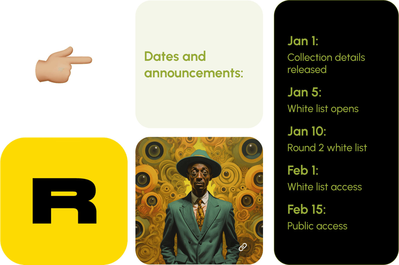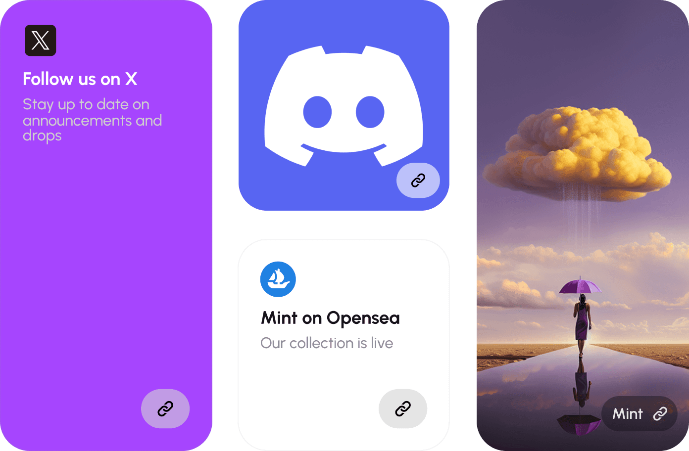 Keep people updated with mint dates, drops, and community events in one easy spot.