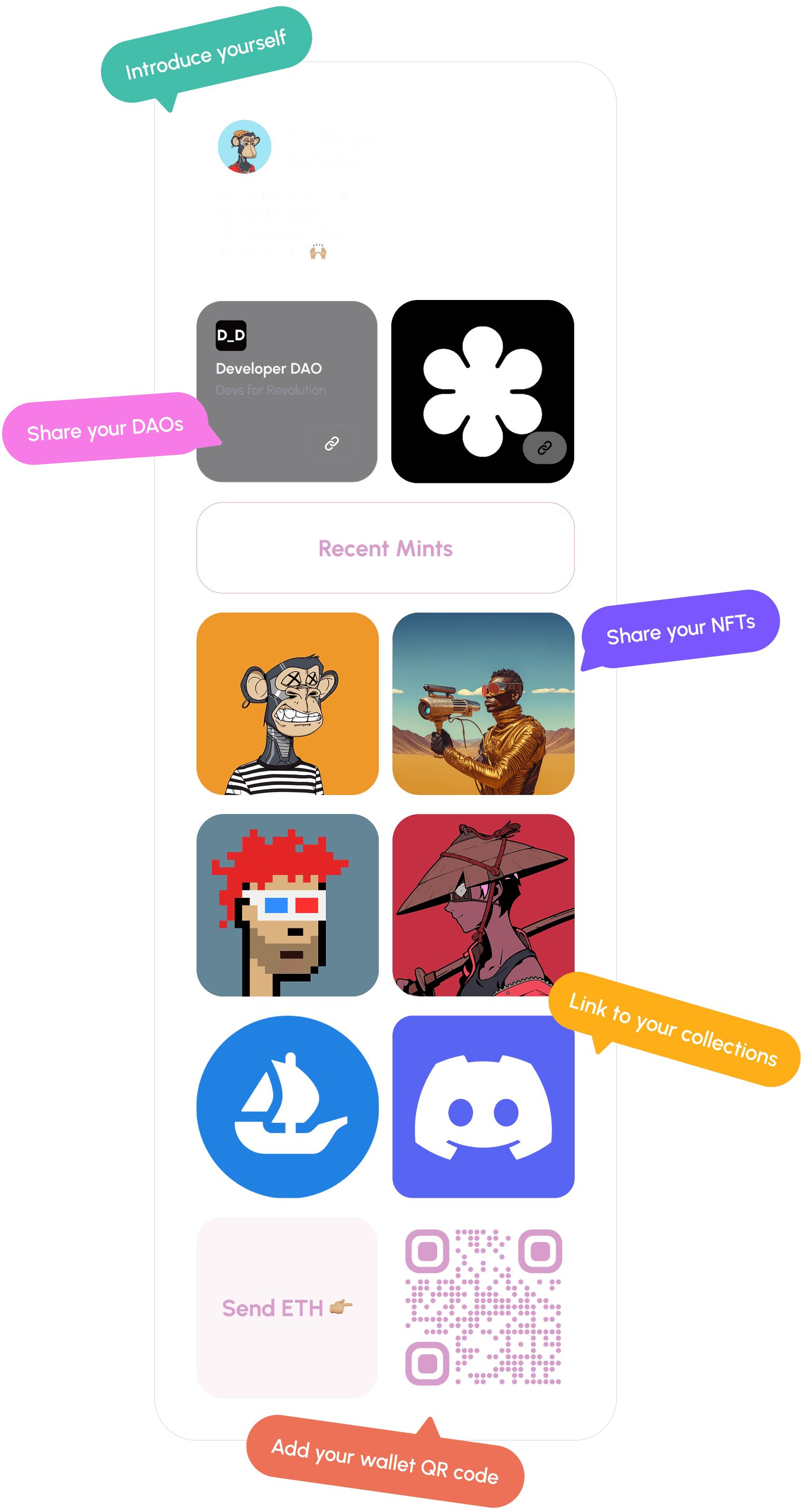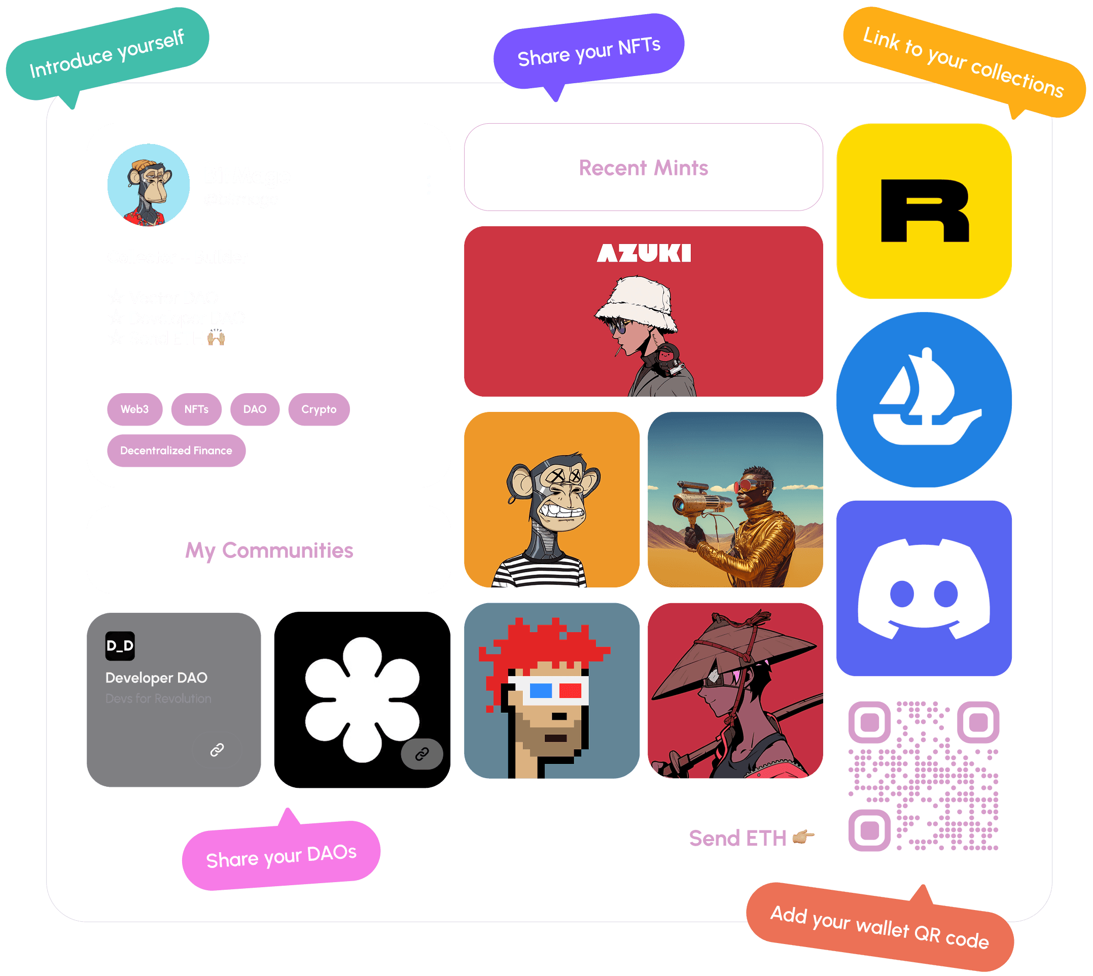 Bring all your wallets, socials, marketplaces, and communities into one clean, shareable page.
